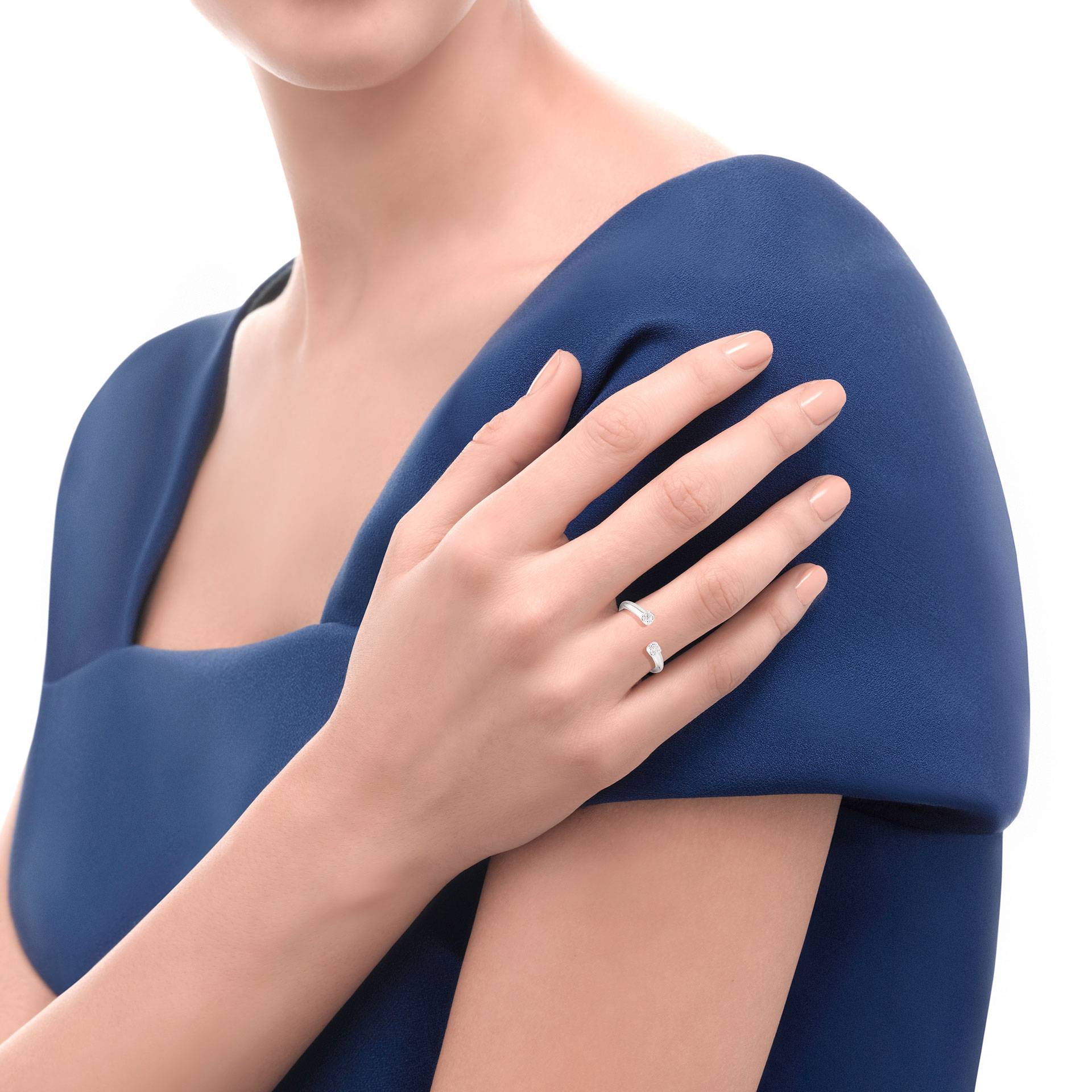 Anello veretta aperta asimmetrica, oro bianco 18 kt e 2 diamanti naturali taglio brillante